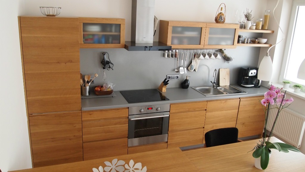 Nabízíme Vám vytvoření moderní kuchyně dle Vašich představ s výběrem elektrospotřebičů AEG, BOSCH, ELECTROLUX, MORA a BAUMATIC ... se zárukou. Na přání pro Vás navrhneme zdarma počítačový návrh kuchyně. Nabízíme širokého množství materiálů pro dýhovené či fóliové, masivní kuchyně. Pro lepší komfort doporučujeme našim zákazníkům pojezdy s tlumením BLUM a HETTICH. Samozřejmostí je pro nás následná doprava a montáž.